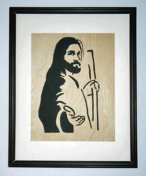 Scrolled from 1/8" thick Baltic Birch plywood and matted for mounting in an 11 x 14 frame. Shown with a simple Dollar Store frame(not included).