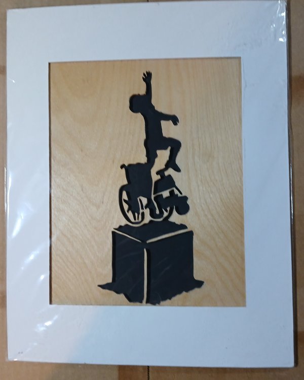Scrolled from 1/8" thick Baltic Birch plywood and matted for mounting in an 11 x 14 frame. Shown with a simple Dollar Store frame(not included).