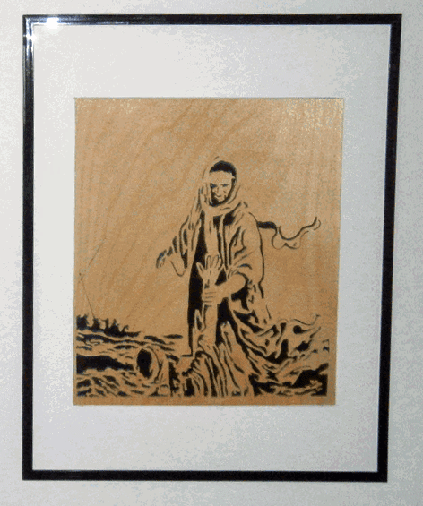 Scrolled from 1/8" thick Baltic Birch plywood and matted for mounting in an 11 x 14 frame. Shown with a simple Dollar Store frame(not included).